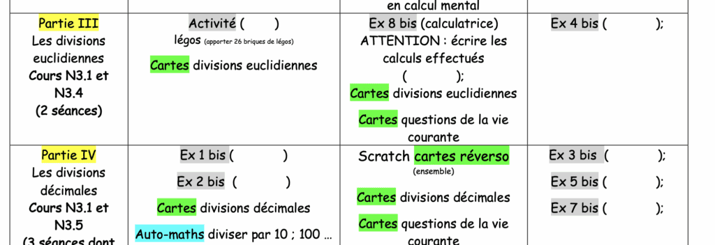 6è - Additions soustractions multiplications et divisions: Plan de travail