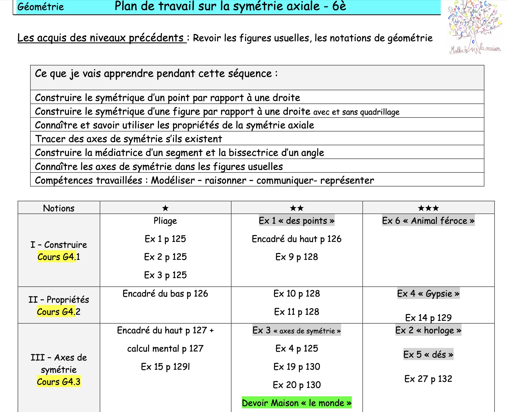 6è - Symétrie axiale: Plan de travail - réforme 2025