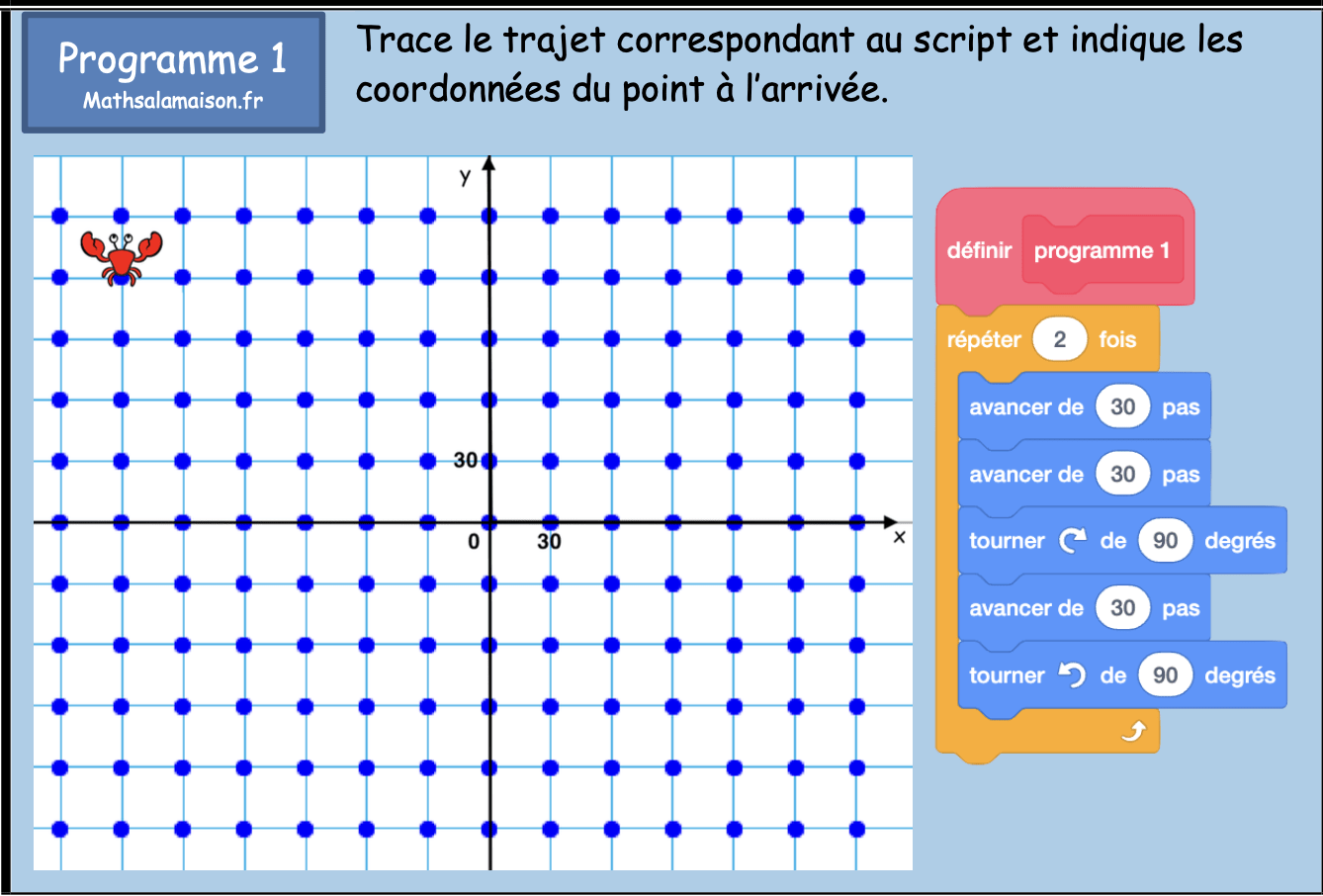 jeu de cartes scratch pour se déplacer dans un repère - cycle 3 et 4